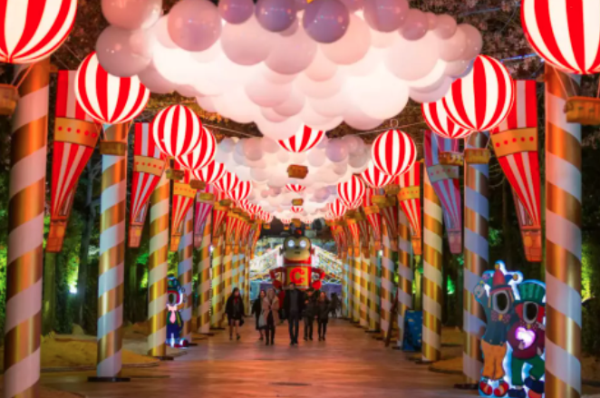 대구 이월드는에서는 사계절 내내 다른 경치를 볼 수 있는 축제가 펼쳐집니다.