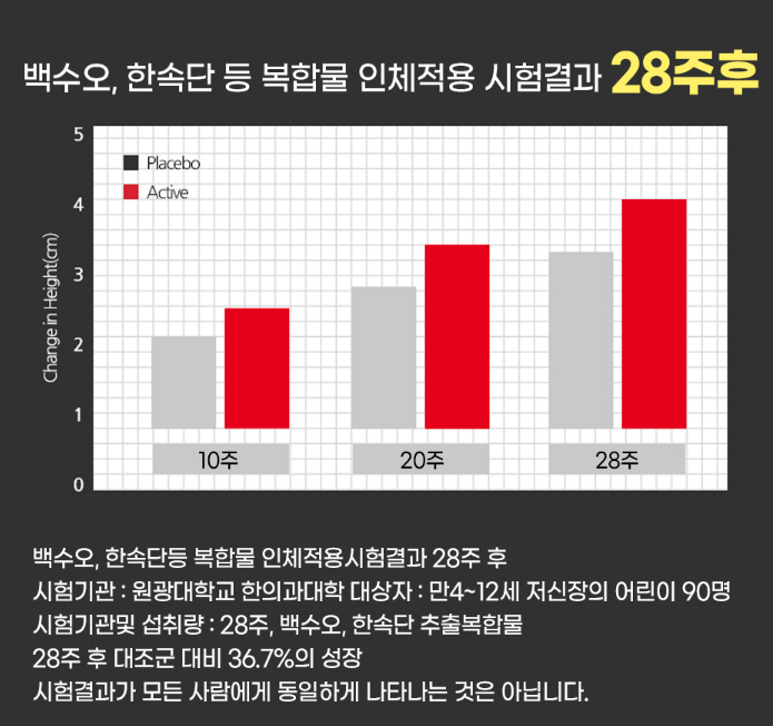 28개월간 임상실험에서는 대조군대비 36.7% 성장이 확인되었다고 하니