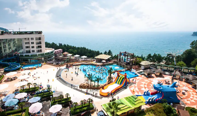 해변에 자리한 3.5성급 리조트, 채석강에서 가까우며 워터파크 이용 가능