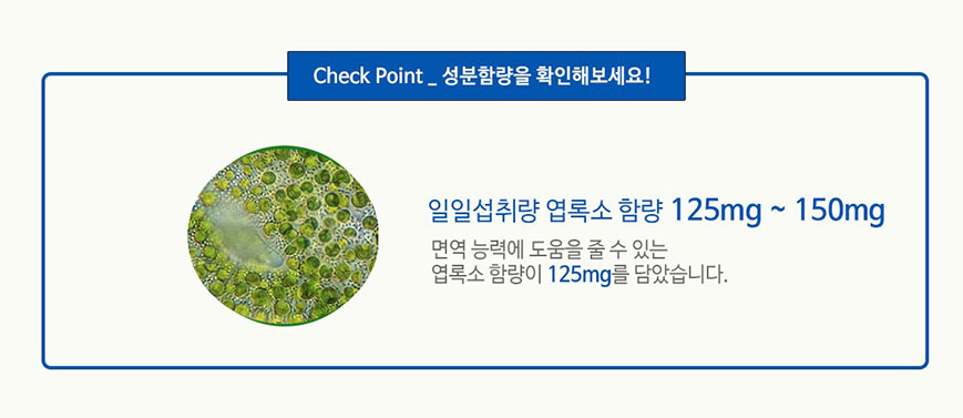 125mg(일일섭취량 엽록소 함량 125mg~150mg)과 그 외 35가지 한약재를 배합하여