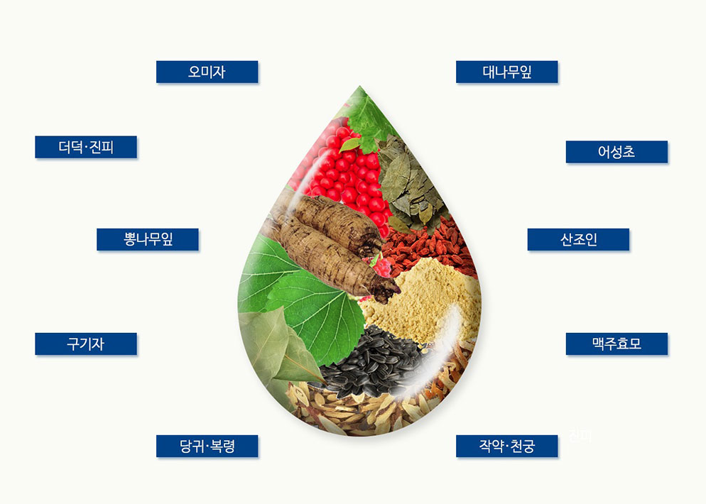 검정콩 추출물, 흑미 추출물, 검은깨 추출물, 로우스위트블루베리 추출물, 뽕나무열매 추출물,