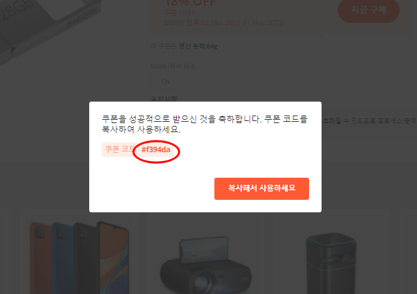 사용방법은 알리익스프레스 프로모션코드와 비슷하더라구요.