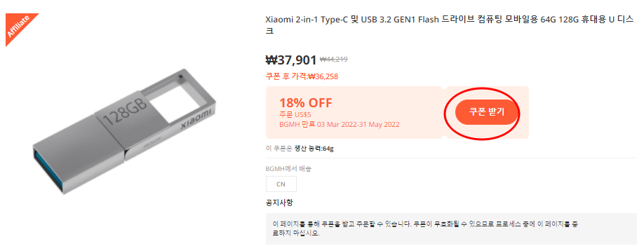 그럼 이상으로 샤오미 USB 2in1 메모리 저장장치 스마트폰 PC 겸용 할인쿠폰 포스팅을 마치겠습니다.