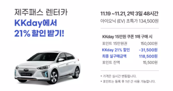2.할인 혜택: KKday 제주 패스 렌트카 21%