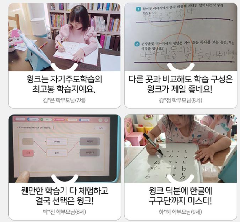 아이가 어려워하고 힘들어하는데, 윙크는 우리 아이 학습 단계에 맞추어 주어 아이가 즐거움 +성취감을 느낄 수 있게 해줘요!