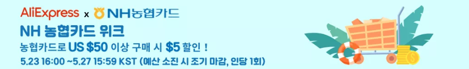 알리익스프레스 5월 할인코드 농협카드 깜짝 5일배송 포스팅은 제휴마케팅이 포함되어있습니다.