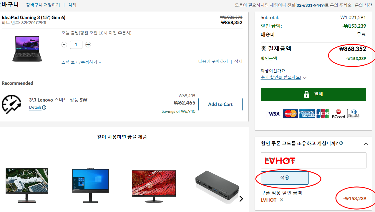 레노버 온라인 스토어에서 제공하는 할인코드가 적용이 되요.