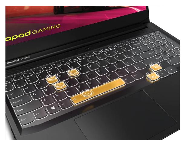 인체공학이 잘 적용된 높은 성능의 키보드는 이길 수 없을 것 같은 게임에서 최후의 승리를 안겨줍니다. IdeaPad Gaming 3 6세대의 키보드는 1.5mm의 키 입력 스트로크, 100% 무한 동시 입력을 특징으로 합니다. 이 키보드를 이용하면 제압한 적의 숫자를 늘려 갈 수 있습니다. 또한, 화이트 백라이트, 선택 옵션인 4존 RGB 키보드로 게임 몰입감을 더 높일 수 있습니다.