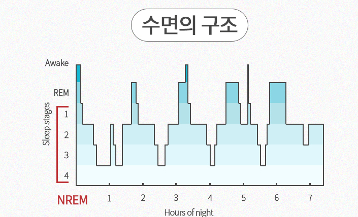 보통 밤수면에는 4~6회의 렘수면-비렘수면 주기가 반복되요.