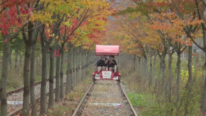 레일바이크 탑승 시 앞차 간 거리를 유지해 주시기 바랍니다.