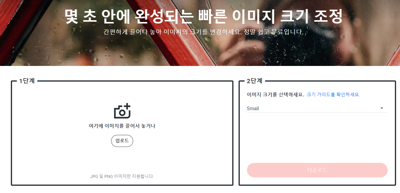 그럼 왼쪽에 이미지 업로드를 하고 오른쪽에서 사이즈를 선택하면
