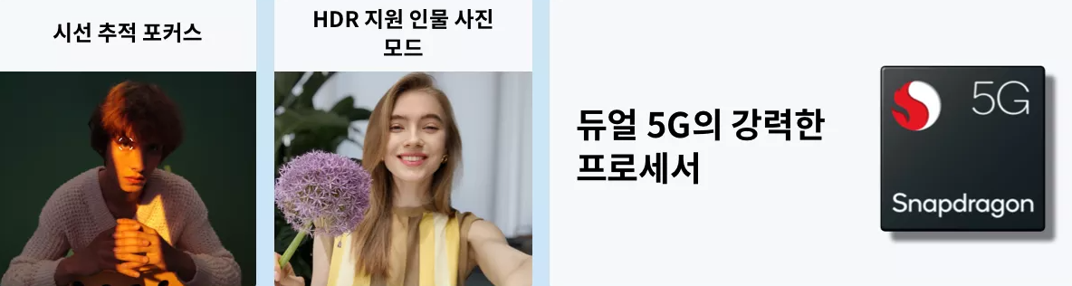 카메라 -------- 108MP + 8MP + 2MP 트리플 리어 카메라, 32MP 전면 카메라