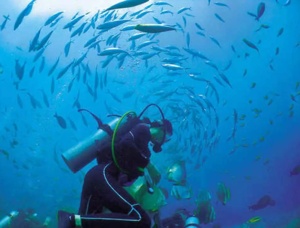 스쿠버 다이빙은 물 속에서 아름다운 열대어와 교감하고, 수많은 산호로 아름다운 관경을 볼 수 있는 해양 스포츠입니다.