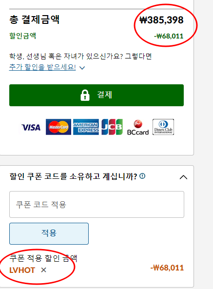 LVHOT 할인코드를 적용하면