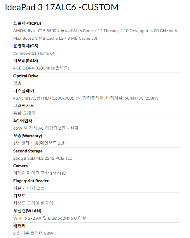 아래의 사양이 75만원에 구입할 수 있는 노트북이에요.