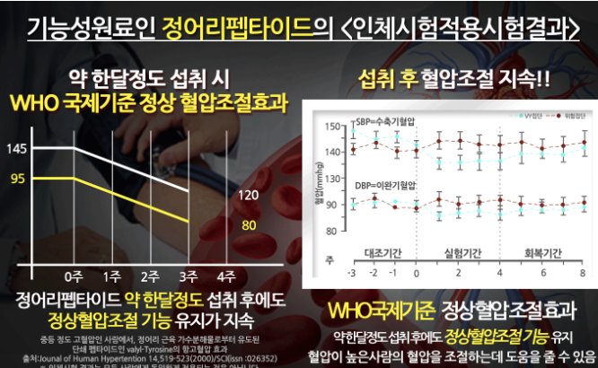 한달정도 섭취후에도 정상혈압조절 기능유지가 지속된다고 인체시험을 통해 연구발표 되었어요.