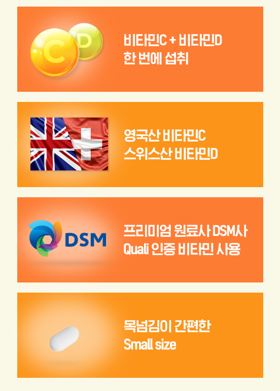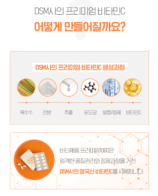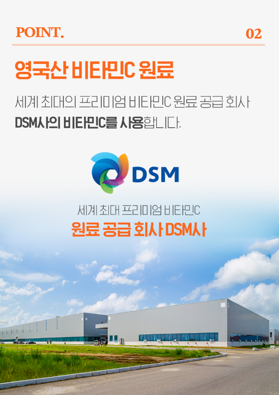 DSM사의 프리미엄 비타민 C,D를 사용합니다.
