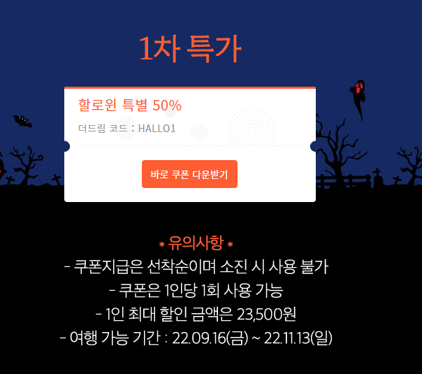 할로윈 할인쿠폰을 받을 수가 있어요.