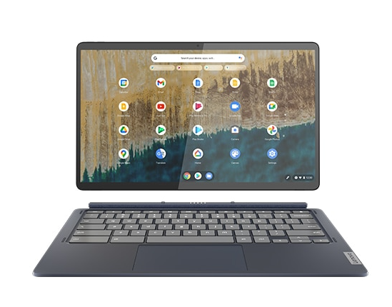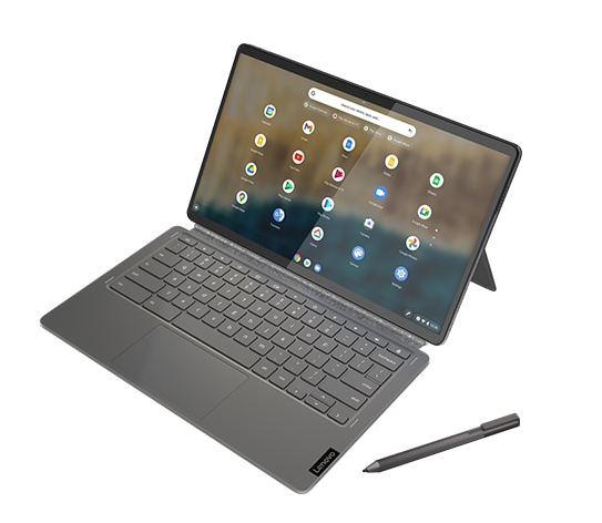탈부착이 가능한 패브릭 폴리오 키보드, 스타일러스 펜 지원, 초경량 울트라슬림 섀시를 갖춘 아이디어패드 듀엣5 크롬북(13.3형)은 2-in-1의 다양한 활용성과 휴대성을 자랑합니다. 화면을 분리하여 태블릿 모드로 영화를 감상하거나, 얇은 노트북 수준의 키보드를 사용하여 교실이나 소파에서 언제 어디서나 생산성을 발휘할 수 있습니다.