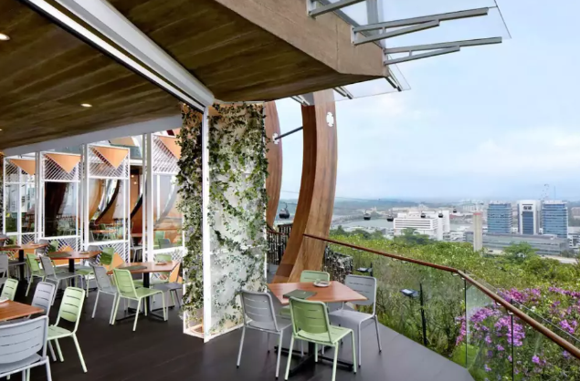 싱가포르 케이블카를 타고 발아래 펼쳐지는 놀라운 뷰를 감상하세요. 그런 다음 아르보라 힐탑 가든 & 비스트로에서 케이크 한 조각과 커피/티를 드시거나 굿 올드 데이즈 레스토랑에서 웨스턴 그릴 버거를 맛보세요.