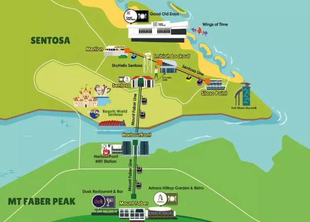 마운트 페이버에서 센토사까지: 1650m – 약 13분 소요