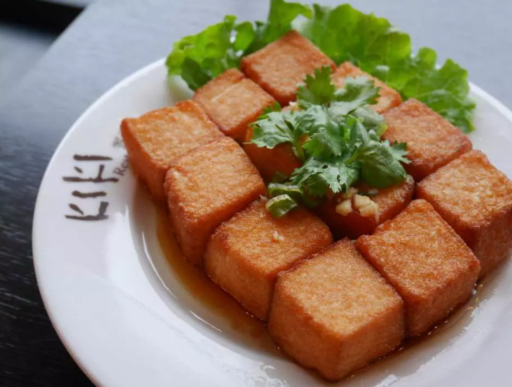 라오피넌러우(老皮嫩肉) - 부드러운 황금 두부: 튀긴 황금색 두부, 겉은 바삭하고 속은 부드러운 식감으로 소스를 곁들어 먹습니다. 한 번 맛보게 되면 그 맛에 반하지 않을 수 없습니다.