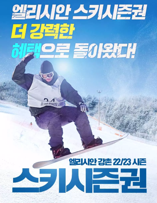 리프트권 엘리시안 강촌 22/23 시즌권 + 장비렌탈 바우처 할인쿠폰 포스팅은 제휴마케팅이 포함되어있습니다.