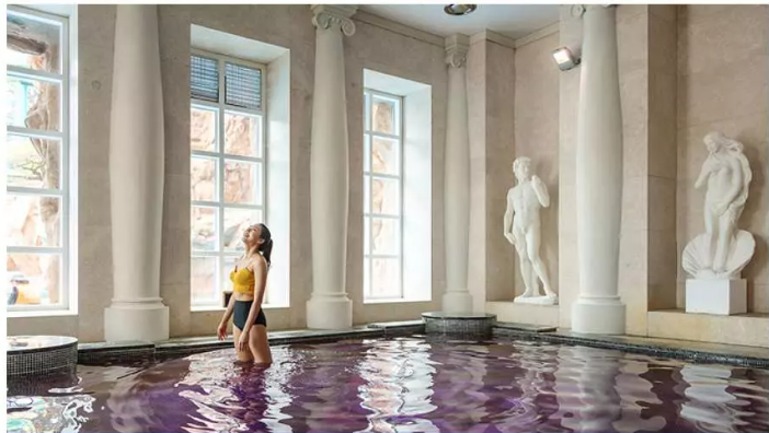 유럽 건축양싱을 본딴 스파팅에서 고대 로마시대의 온천문화를 즐기는 듯한 기분을