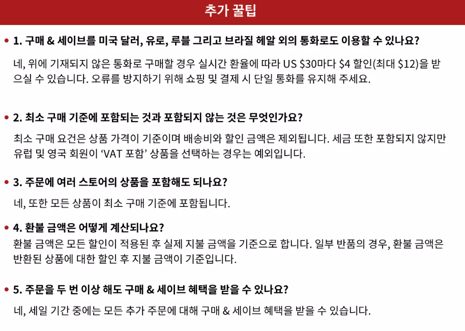 1. 구매 &세이브를 미국 달러, 유로, 루블 그리고 브라질 헤알 외의 통화로도 이용할 수가 있나요?