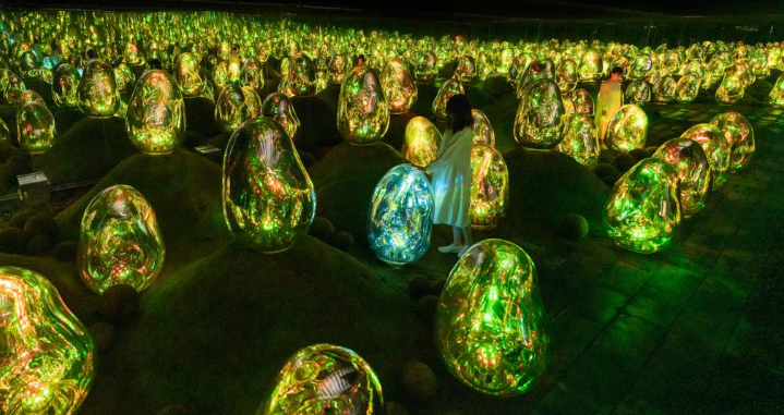 도쿄 팀랩 플래닛(teamLab Planets)은 관객이 오감으로 느낄 수 있는 "Body Immersive" 컨셉을 기반으로 5개의 거대한 작품 공간을 중심으로 총 8개의 작품들로 구성됩니다. 관람객은 신발을 벗고 입장하여 바닥의 질감과 물 위를 걸으며 발바닥으로 느끼고 온몸을 사용하여 작품을 감상해봅니다. 전시관 내 작품들은 관람객의 상호 작용에 따라 다르게 변화하며 이를 통해 신체와 작품 사이의 모호한 경계선을 허물고 자신과 세계와의 경계에 대해 다시 생각해보는 환상적인 체험을 경험해봅니다.