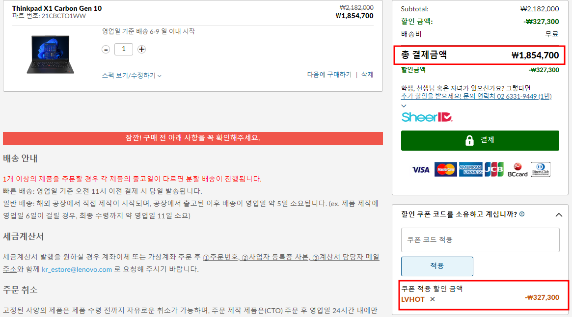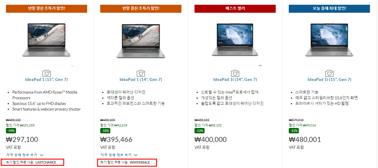 앞에 두 모델은 레노버에서 제공하는 할인코드를 사용하는 것이