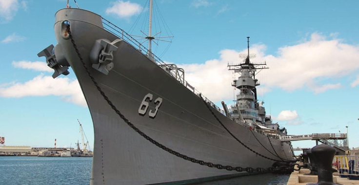 이오지마 전투, 페르시아만 전쟁, 제2차 세계 대전에 참전한 미주리함을 감상할 수 있는