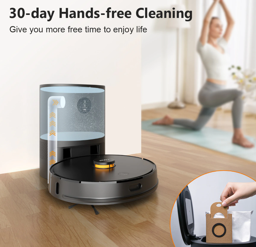 자동 먼지 비움: 3,000ml 더스트 백과 자동 먼지 비움 베이스