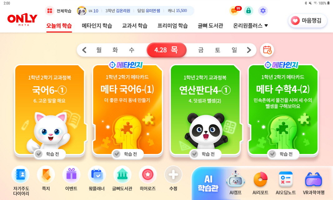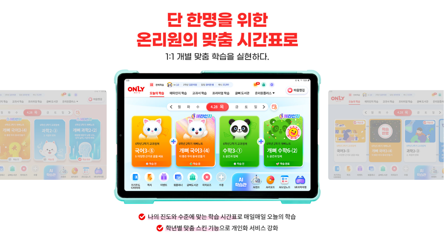 학년별 맞춤 스킨 기능으로 개인화 서비스가 강화되어 있는 것도