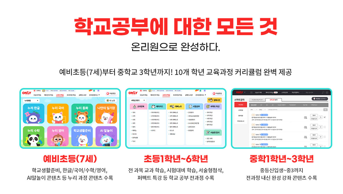 [7세부터 초등, 중학 과정까지 이어지는 온리원 학습]