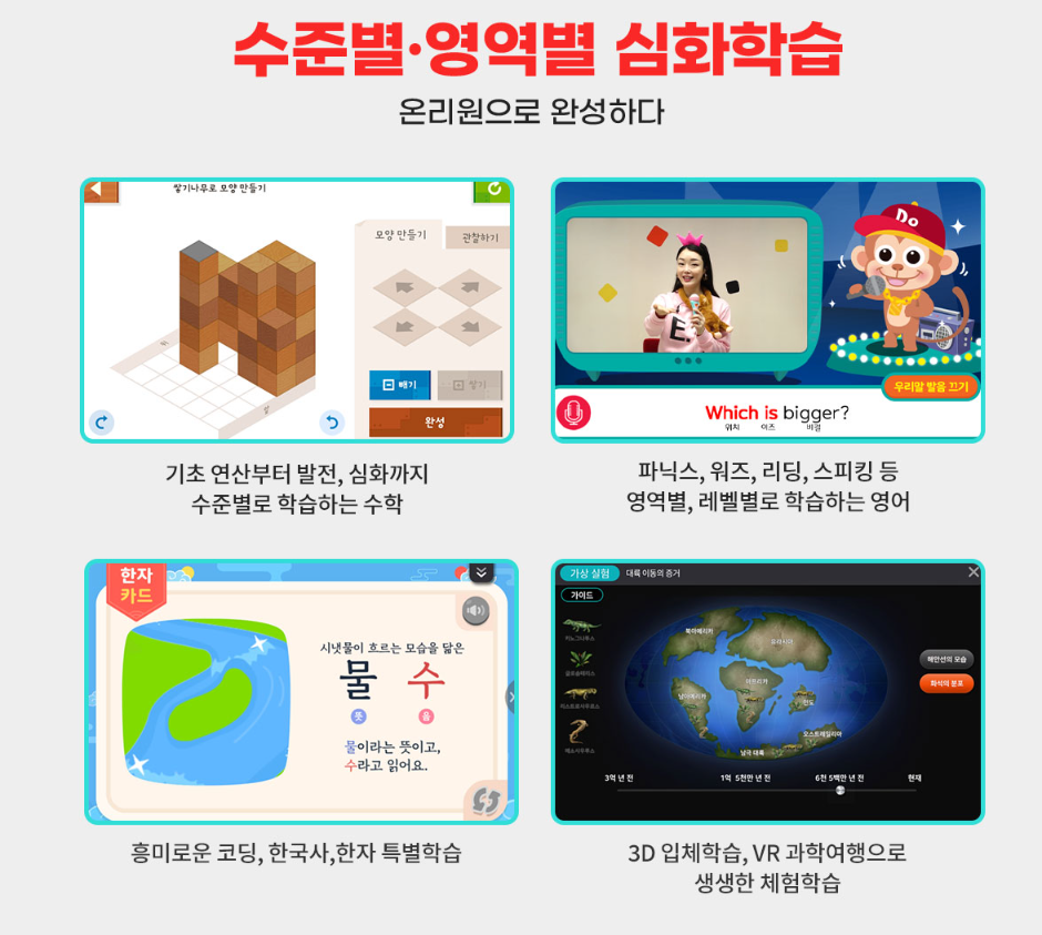 파닉스, 워즈, 리딩, 스피킹등 영역별, 레벨별로 학습하는 영어