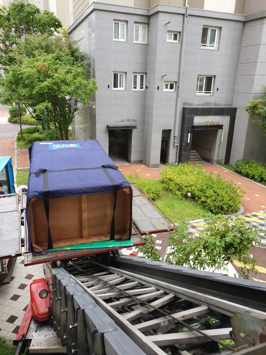 - 작업환경에 맞춰 사다리차, 엘리베이터, 계당등으로 안전하게 반출
