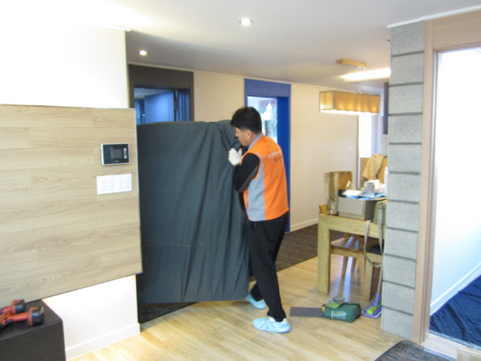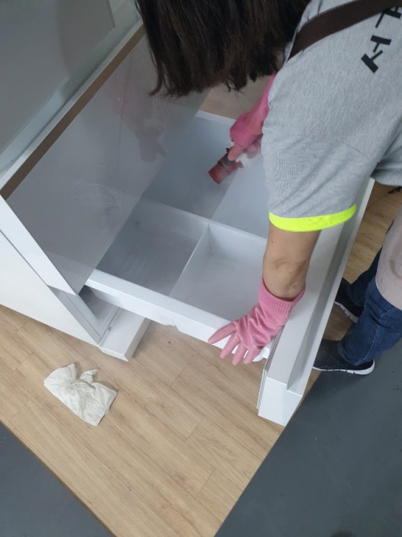 - 책장, 선반, 장롱, 옷장 등의 내용품 배치전 기초 청소작업진행