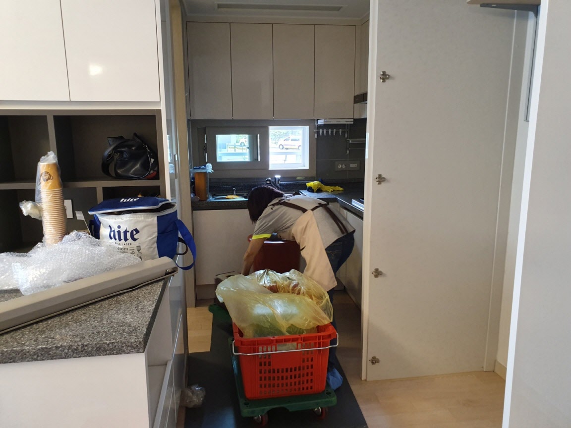 - 기존 정리 완료 후 방, 거실, 주방 등의 기초 및 스팀 청소 서비스 실시