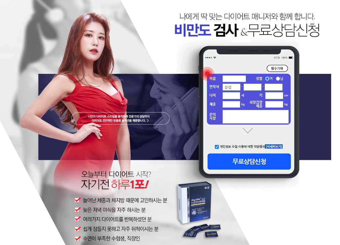 위에 포함되시는 분들은 무료 상담과 비만도 검사를 받아보세요.
