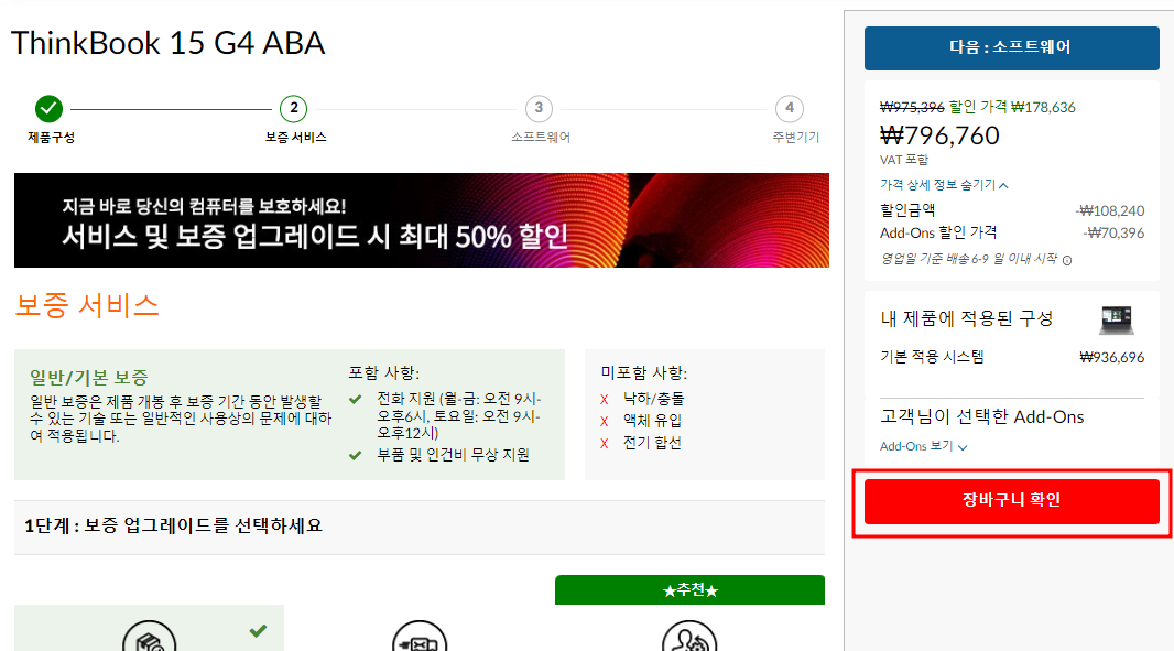 "다음 보증서비스"를 클릭해서 다음화면으로 넘어가주세요.