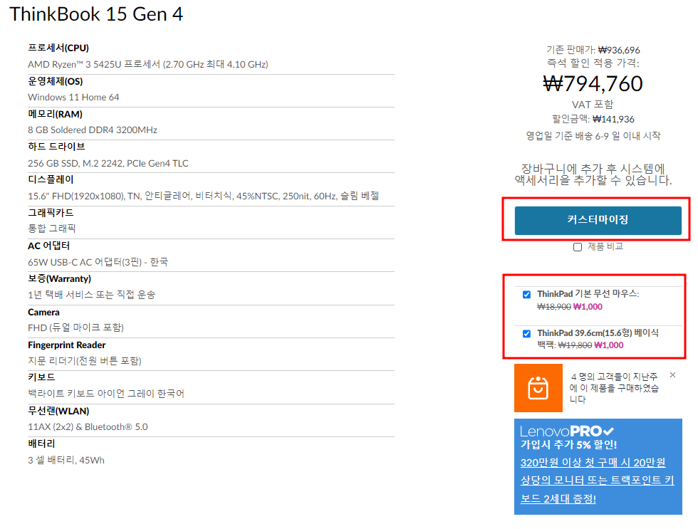 그럼 이상으로 AMD노트북 ThinkBook 씽크북 15 Gen4 레노버 할인쿠폰 80만원이하 백팩포함 포스팅을 마치겠습니다.