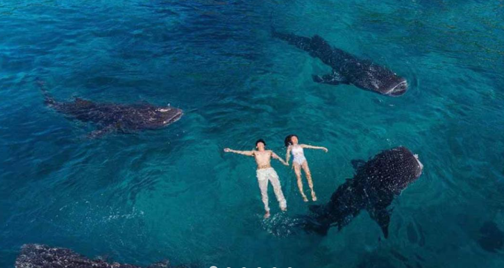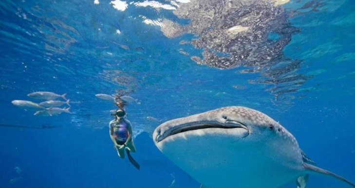 몸집을 크지만 사람을 잘따르는 고래상어와 수영을 즐겨보세요!