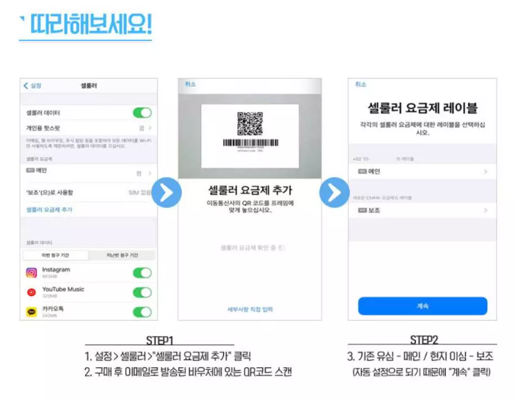 2. 스마트폰 재부팅 후 이심 인식 및 연결 여부 확인