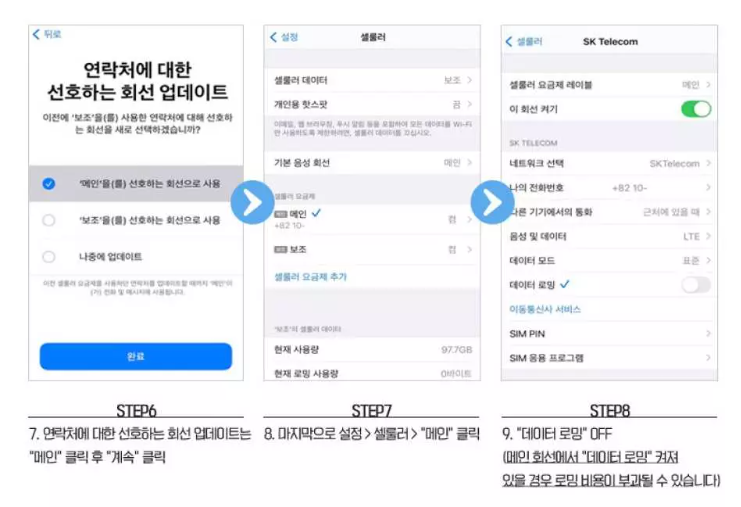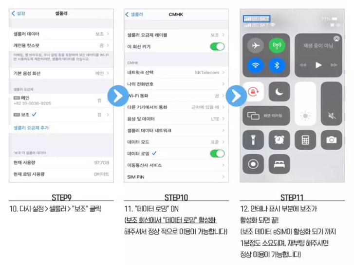 * 사용하기전에 '데이터 로밍' 꼭 열어주시길 바랍니다.