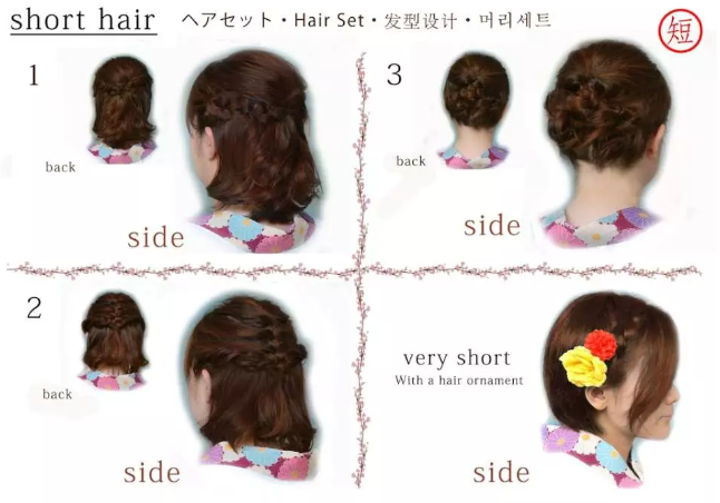 일본식 헤어스타일과 신발, 가방으로 우아한 룩을 완성해보세요.