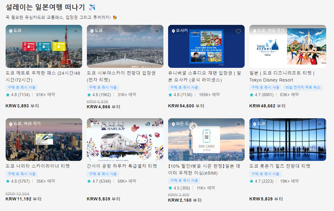 kkday에서는 일본 대만 상품 뿐만 아니라