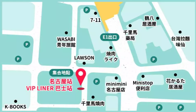 - 8:00am: 나고야역 VIP 라이너 버스 정류장
