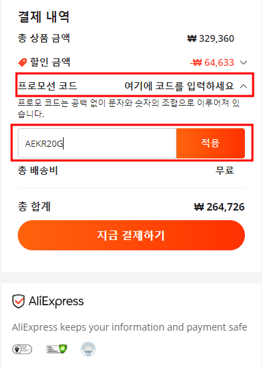 그래서 알리익스프레스의 할인코드 = 프로모션코드를 공유해드리고