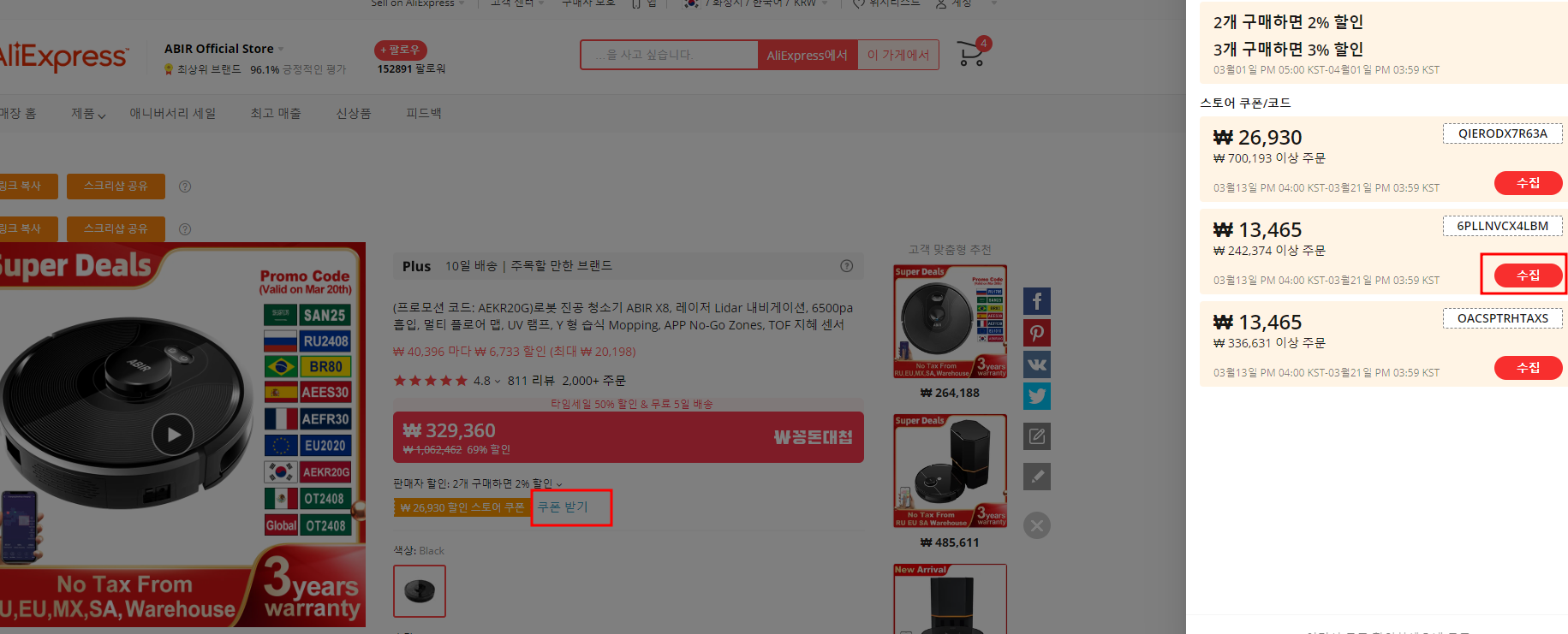 제가 고른 로봇 청소기는 스토어 쿠폰을 같이 주더라구요.
